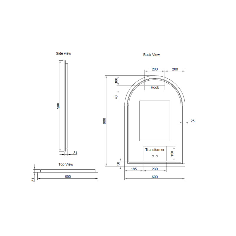 Mirror Type: Brushed Copper Framed LED Arch Mirror