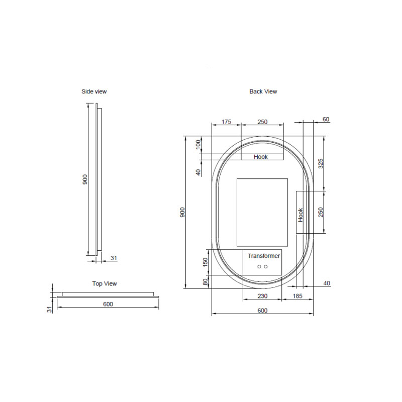 Mirror Type: Brushed Copper Framed Oval LED Mirror